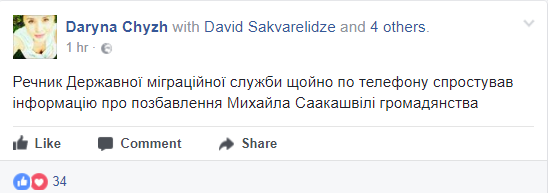 "Мне подтверждают: это правда - грузинского Януковича Михо Саакашвили лишили украинского гражданства и это свидетельствует, что президент Петр Порошенко наконец начал признавать собственные ошибки. Он незаконным образом предоставил наше гражданство и сейчас исправляет исключительно собственные ошибки", - написал он.