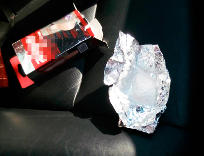 При осмотре автомобиля были обнаружены и изъяты ручная граната, белый порошок, похожий на амфетамин, и камни, по внешним признакам напоминающие янтарь.