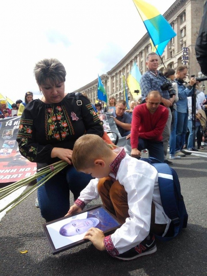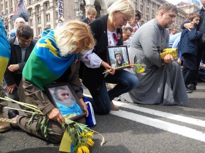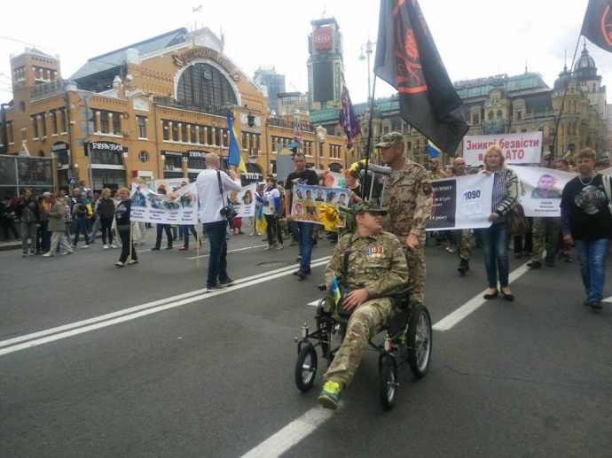 В центре Киева проходит акция "Шествие непокоренных" с участием родственников погибших в зоне проведения АТО, которые служили в добробатах.