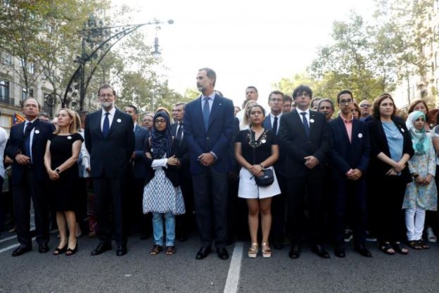 Марш состоялся на центральной площади Ла Рамбла, где было совершено нападение.