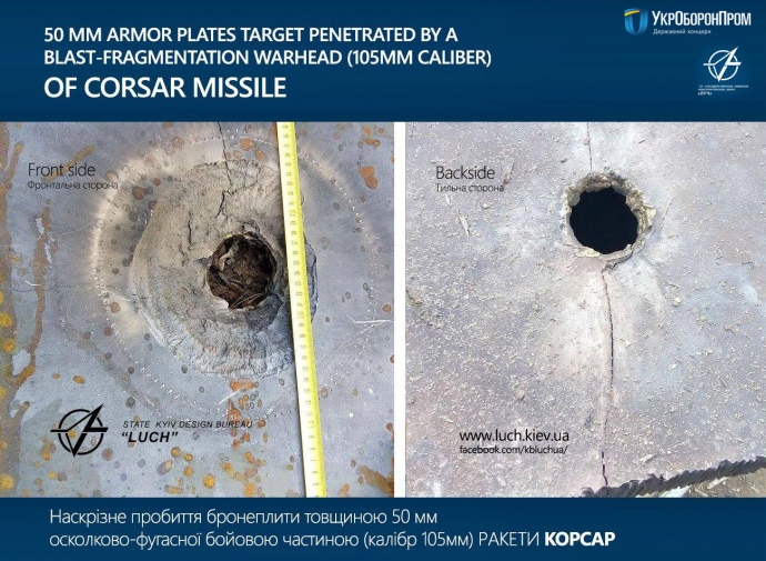 К "Корсару" конструкторское бюро "Луч", которое входит в государственный концерн "Укроборонпром", досрочно изготовило и поставило в Вооруженные Силы более 50 ракет и пусковых установок.