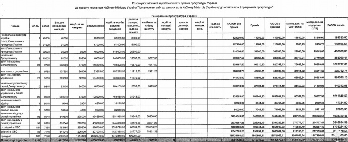 В приложении к проекту постановления Минсоцполитики обнародовал расчеты месячных зарплат, в том числе, руководства ГПУ.