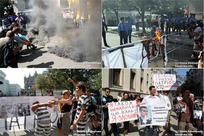– Біля адміністрації президента палили плакати та кидали димові шашки. Активісти від "Свободи", УНП, КУН та інших політичних організацій протестували проти репресій.