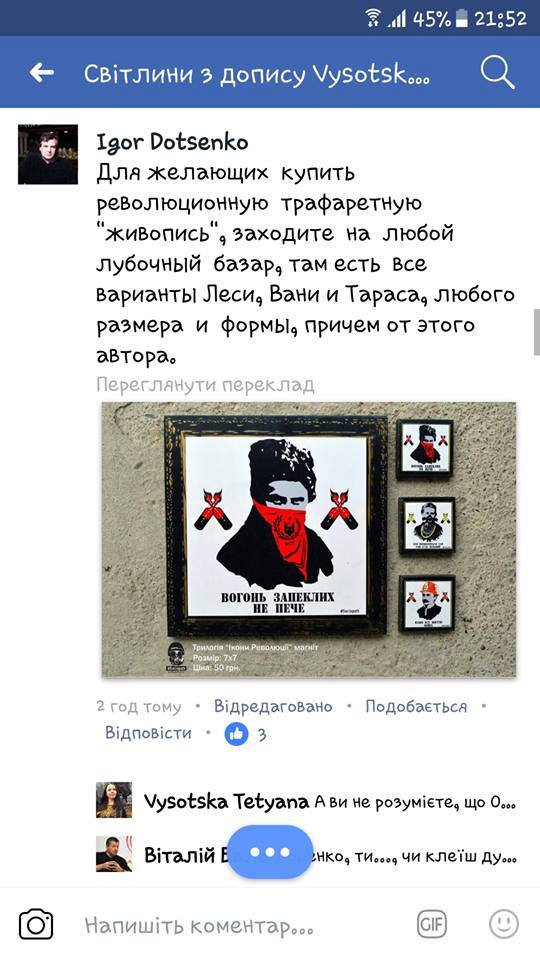 "То есть 3,5 года за ними ухаживать, а потом взять их зарисовать? Причем сделать это тогда, когда все из отпусков приехали, когда в субботу полное город людей, все гуляют, ярмарки. Это провокация. Сам Вятрович у себя на фейсбуке написал и своим постом все всем объяснил", – сказал Доценко.