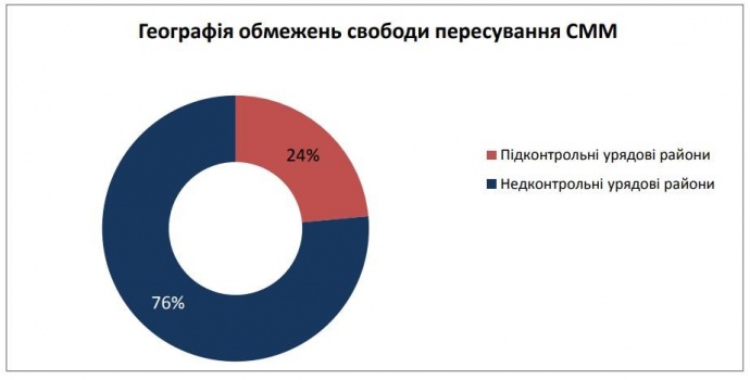 "В первом полугодии 2017 года в своей деятельности Миссия столкнулась ориентировочно с 480 случаями ограничений и препятствий, из которых 75% произошли в неподконтрольных правительству районах", - говорится в сообщении.