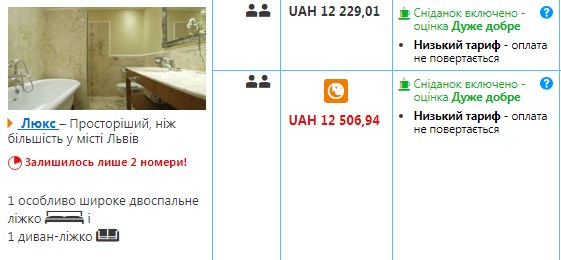 Так, снять двухместный стандартный номер на сутки с 12 на 13 сентября стоит 6 тысяч 264 грн.