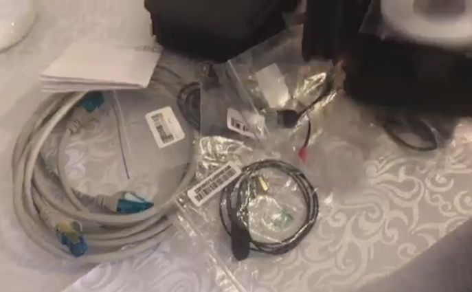Политик на камеру рассмотрел якобы найденное там: "Кабель вот интересный. Это – я не знаю, специальное устройство, я так понимаю, для подслушивания. Это диски, куда записывается вся эта история. Это, насколько я понимаю, камеры для записи в номерах, спальных комнатах, фойе…".