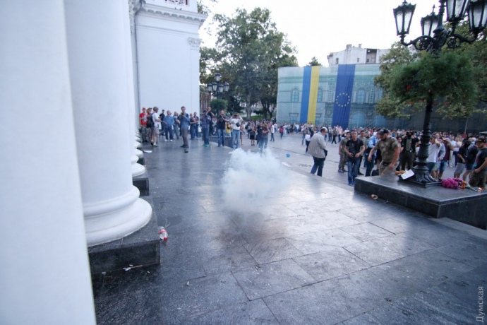 Одесса: под горсоветом драка и взрыв, полиция применила газ