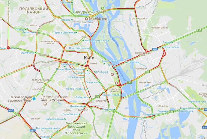 Улица Грушевского в центре Киева перекрыта, установлены рамки металлоискателей. На Европейской площади и площади Славы огромные пробки.