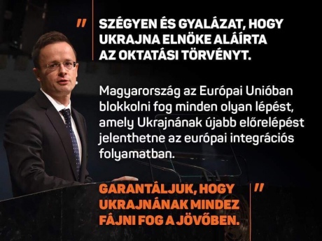 В сообщении МИД отмечается, что Украина "может забыть об интеграции в Европу", а также приводится объяснение в виде прямой цитаты министра: "Венгрия будет блокировать любые инициативы, выгодные Украине, в международных организациях, особенно в ЕС".