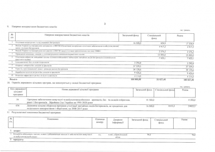 - 9,42 миллиона гривен – на производственно-технические расходы баз, складов и арсеналов,