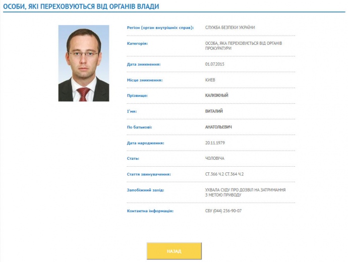 Экс-депутат Виталий Калюжный находится в розыске еще с 2015 года по делу о голосовании за "диктаторские законы".