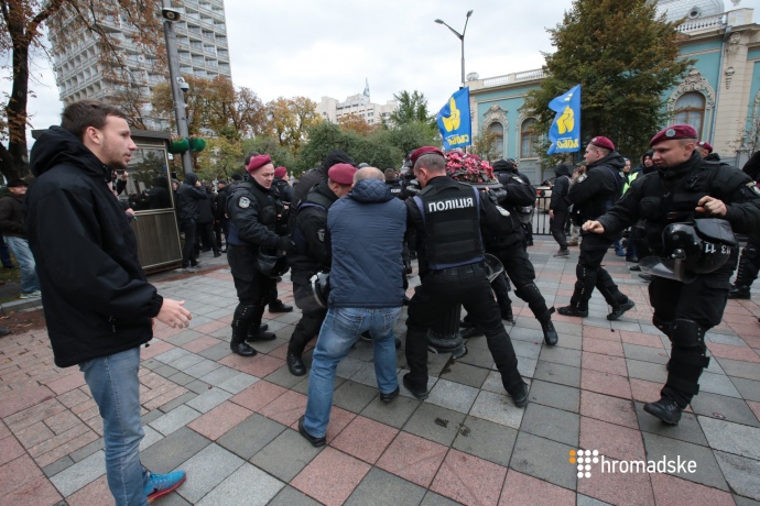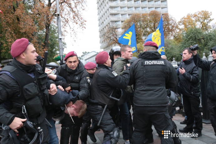 Под стенами Верховной Рады произошли столкновения между представителями партии "Национальный корпус" и полицейскими.