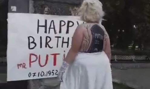 В центре Киева обнаженная активистка Femen поздравила Путина с днем рождения