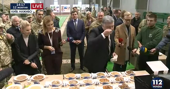Порошенко попробовал солдатский борщ и вспомнил Марину