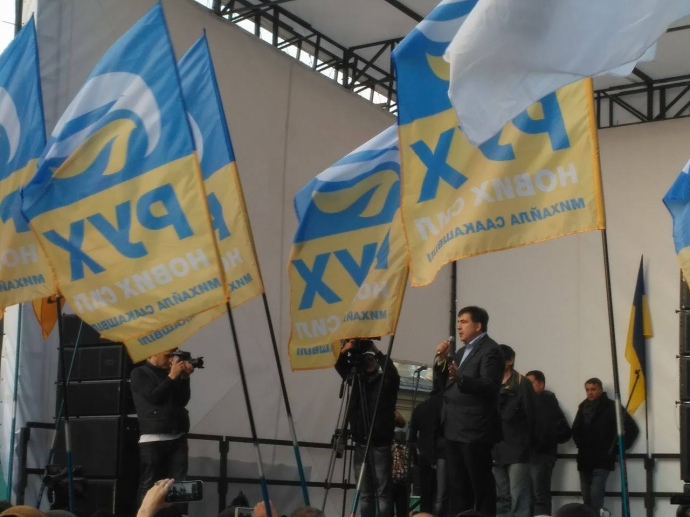 Лидер партии "Рух нових сил" Михеил Саакашвили призвал митингующих оставаться под Верховной Радой до выполнения их требований.