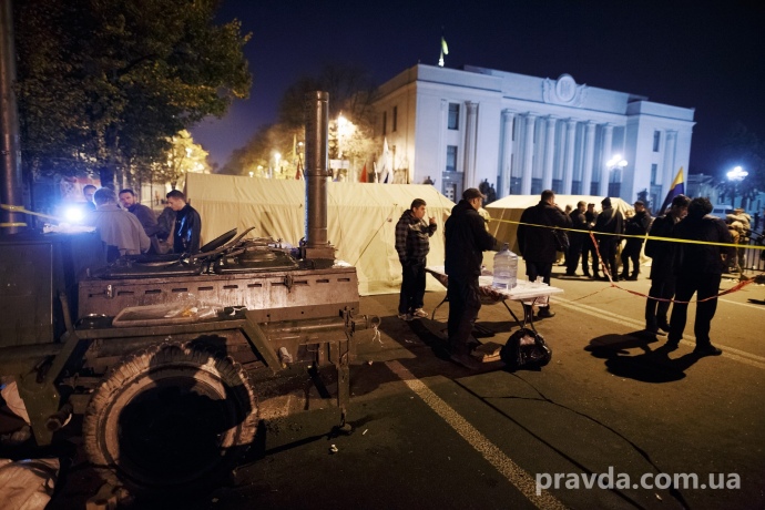 Позже митингующие установили несколько палаток перед Верховной Радой.