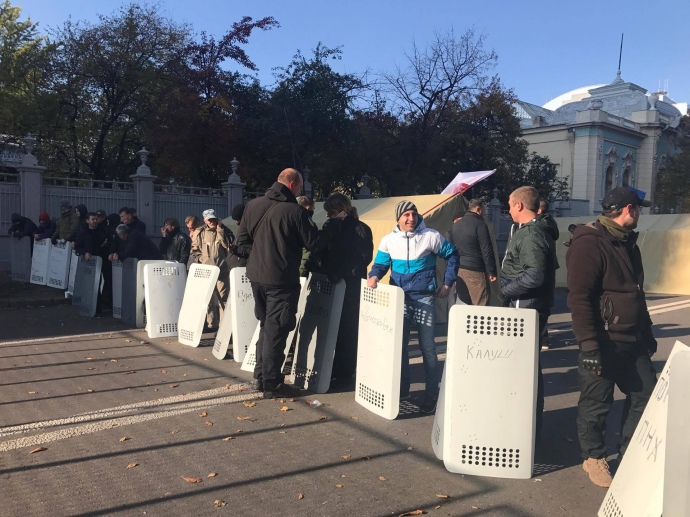 Позже между правоохранителями и активистами произошли столкновения, митингующие установили несколько палаток перед Верховной Радой.