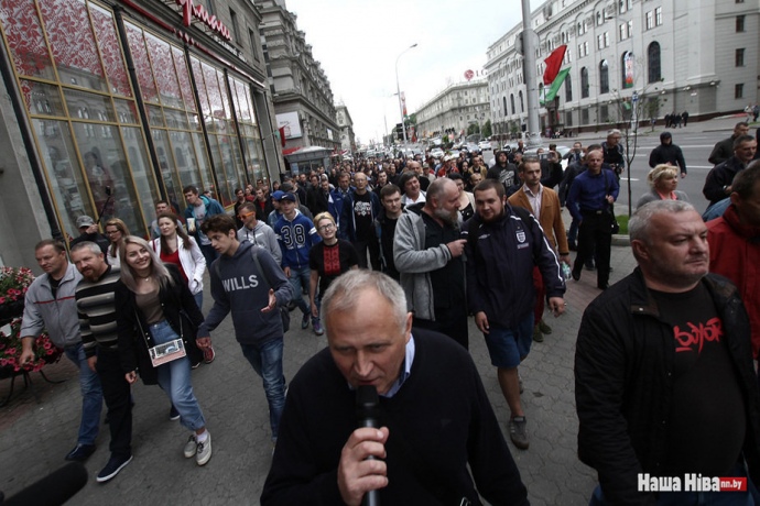 Инициатор "Марша" - Белорусский национальный конгресс. Основные требования участников акции - отмена декрета №3 - "о тунеядцах", повышение зарплат и пенсий.