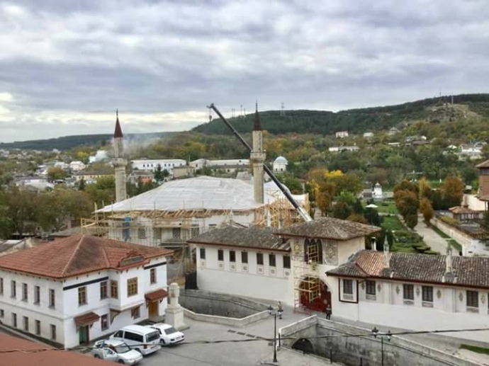 В начале октября незаконно избранный в Госдуму от Крыма депутат Руслан Бальбек заявил российским СМИ, что "в период Украины Ханский дворец в Бахчисарае использовали как объект обогащения", якобы на территории дворца проводились раскопки и был нанесен ущерб "золотой комнате" во дворце и Большой ханской мечети.