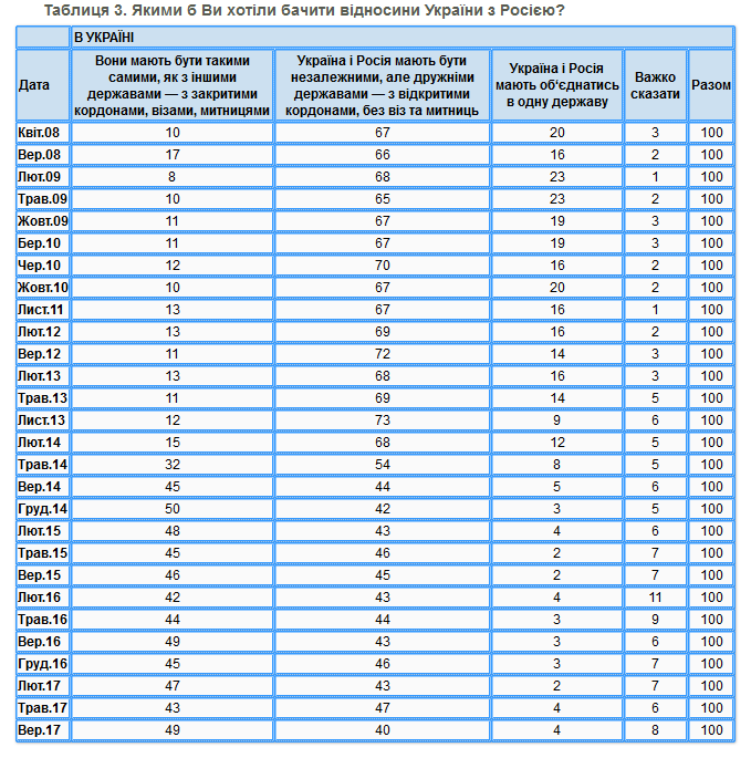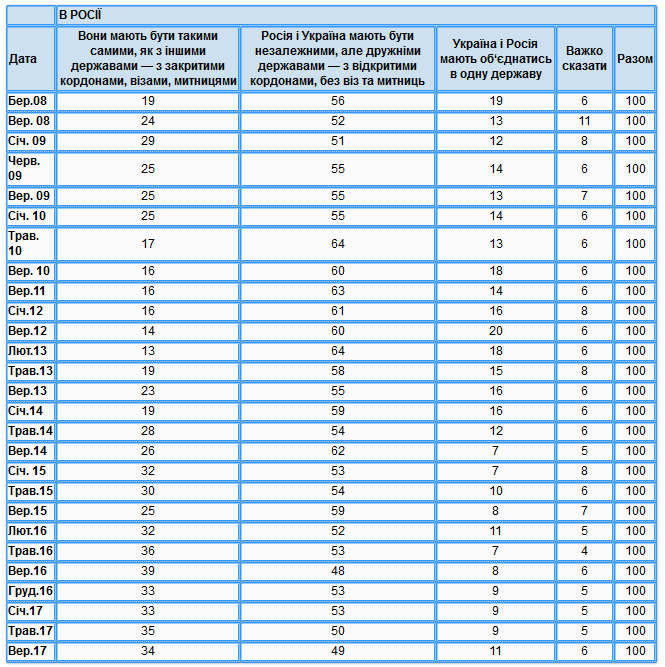 При этом количество желающих закрытых границ и таможен с Россией составляет 49% (было 43%).