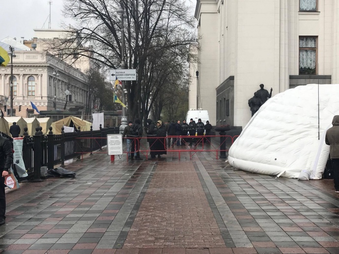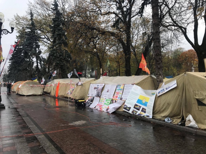 21 октября участники акции под Верховной Радой организовали там военный лагерь и заявили об ультиматуме президенту Порошенко с требованием внести в парламент законы об Антикоррупционном суде и об импичменте.