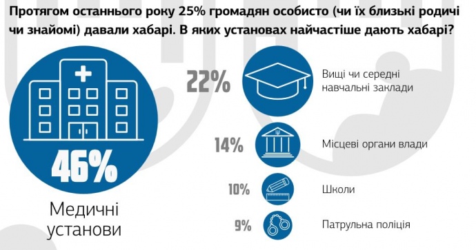 В течение последнего года 25% граждан Украины, которые приняли участие в опросе, вынуждены были давать взятки.