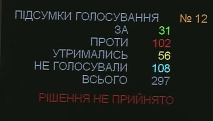 102 нардепа проголосовали против отставки, 56 воздержались.