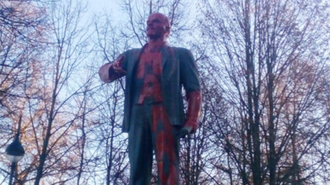 "В парке неизвестный мужчина из хулиганских побуждений облил красной краской памятник Ленину, написал на груди памятника "палач", а также развесил на деревьях открытки с цитатами из текстов Ленина", - говорится в сообщении.