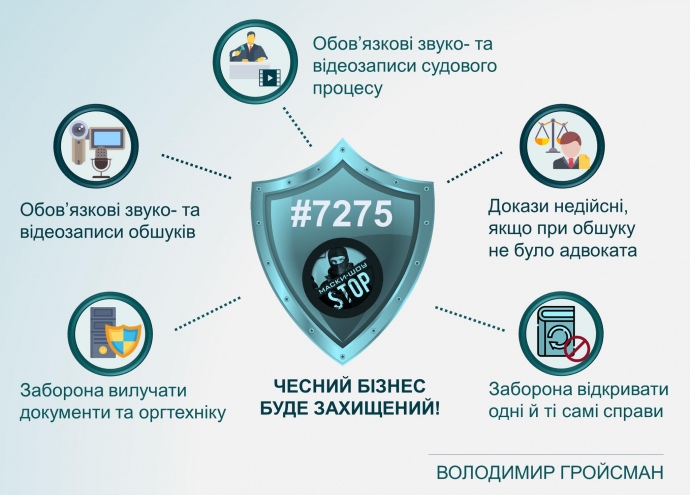 Он добавил, что по новому закону, если во время обысков были изъяты документы предпринимателей, техника и другие материалы без присутствия адвоката, то изъятые материалы не смогут в дальнейшем использоваться стороной обвинения.