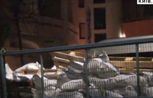 Телеканал NewsOne заблокировали мешками и колючей проволокой