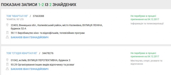 Между тем, Иван Геннадьевич Баканов руководит также ООО "95 квартал" и ООО "Студия Квартал-95".