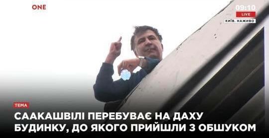 Лидер партии "Рух новых сил" Михэил Саакашвили во время обыска в его квартире в центре Киева вылез на крышу и угрожал, что спрыгнет.
