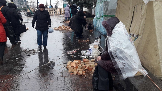 Из сторонников Михэила Саакашвили корреспондент УП никого не заметил, со сцены на Площади Конституции никто не выступает.