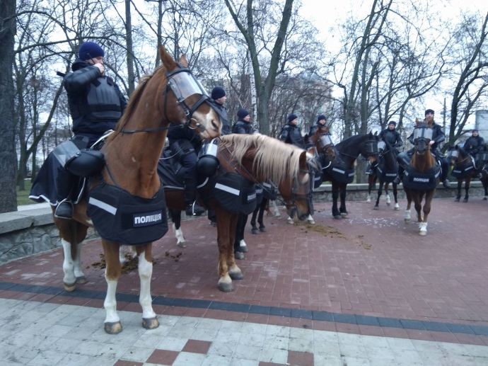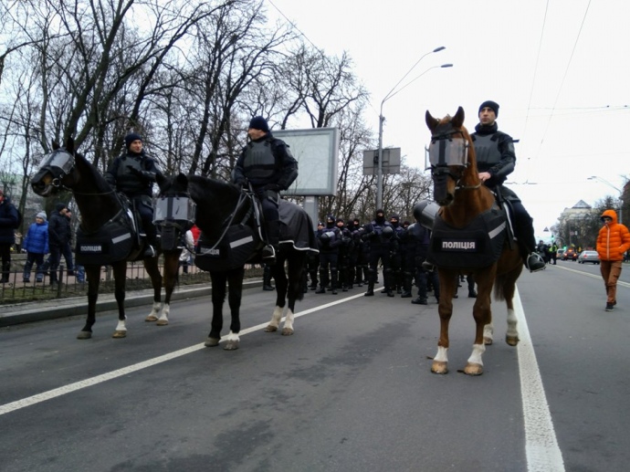 Колонна начала движение по бульвару Шевченко в сопровождении конной полиции. Люди пройдут через Крещатик к Майдану Независимости, где установлена сцена и пройдет вече.