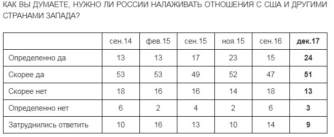 Также опрос касался необходимости налаживать отношения с США и другими странами Запада.