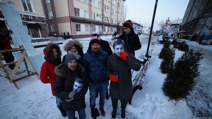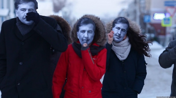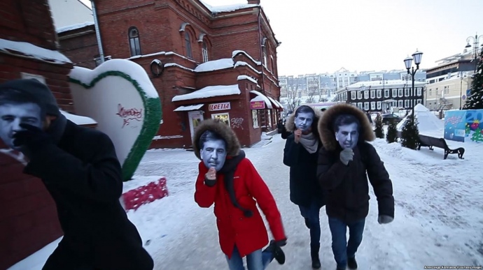 В российском городе Томск несколько активистов в ответ на слова президента РФ Владимира Путина об экс-президенте Грузии Михеиле Саакашвили устроили перформанс в масках последнего.
