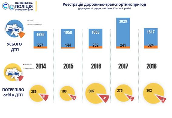 По данным Нацполиции, во время выходных дней к правоохранителям поступило 1817 сообщений о фактах совершения ДТП. По сравнению с прошлыми годами этот показатель является одним из самых низких за последние 5 лет (в среднем - 2062).