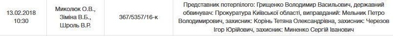 Об этом говорится в списке дел, назначенных к рассмотрению в Апелляционном суде Киевской области.