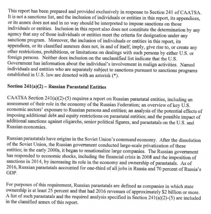 В "кремлевский список" Минфина США попали российские компании, которые как минимум на четверть принадлежат государству и имеют доход более 2 миллиардов долларов.