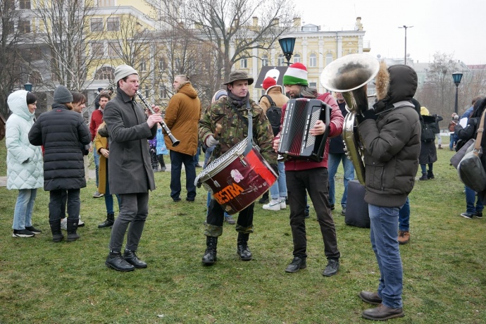 Среди присутствующих на акции были и остаются участники АТО, активисты, блогеры, архитекторы и музыканты, в частности Олег "Фагот" Михайлюта (ТНМК) и Андрей Хлывнюк (Бумбокс).