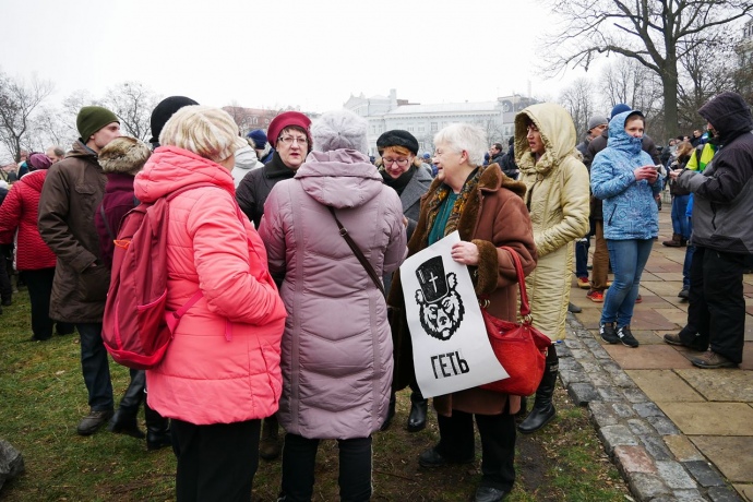 Активисты из националистических организаций, которые присутствовали в начале акции на Десятинке, ушли. Теперь на акции остаются киевляне, которые выступают за демонтаж храма УПЦ МП.