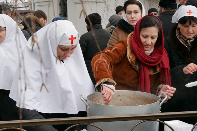 В настоящее время ситуация возле Десятинной церкви спокойная. Литургия в храме УПЦ МП продолжается. Представители церкви варят на прилегающей территории гречневую кашу и угощают всех желающих.