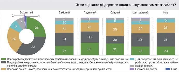 На просьбу оценить действия государства по чествованию памяти погибших 33% родственников ответили, что власть делает недостаточно для сохранения памяти у будущих поколений.