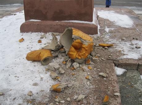 – У місті Охтирка на Сумщині більше десяти прихильників партії "Свобода" на чолі з нардепом Ігорем Мірошниченком зруйнували пам’ятник Володимиру Леніну.