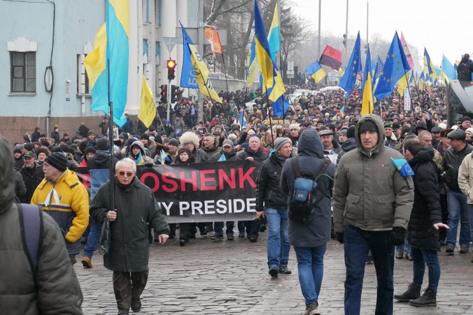 Колонна марша "За будущее" сторонников Саакашвили идет к Михайловской площади.