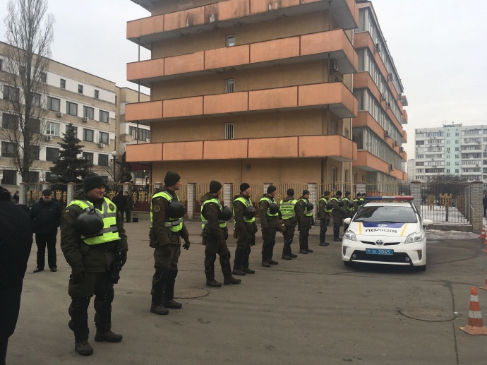 Утром 21 февраля здание Оболонского райсуда Киева, где рассматривается дело о государственной измене экс-президента Виктора Януковича, находится под усиленной охраной.