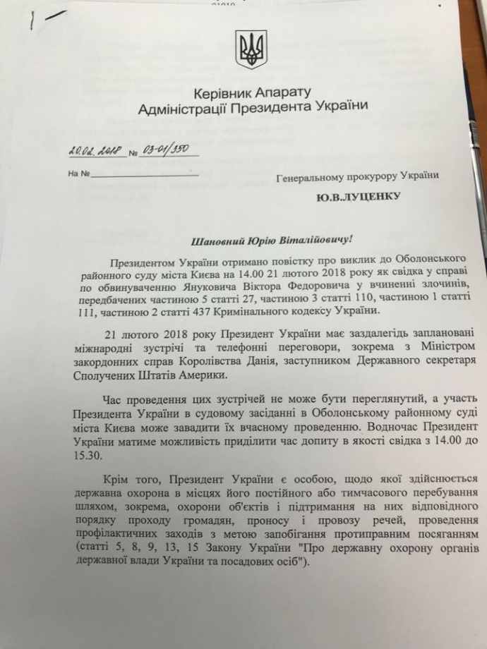 Как известно, 18 февраля президент Порошенко заявил, что примет участие в судебном процессе по Януковичу.