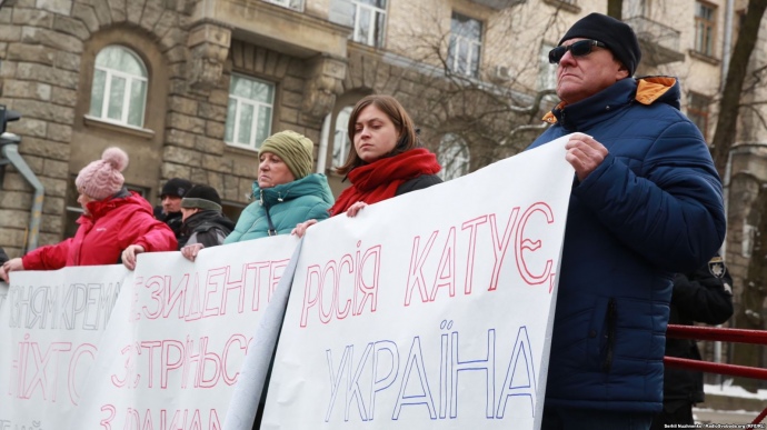 Отмечается, что родственники пленников Кремля 21 февраля пришли к зданию Администрации президента и требовали, чтобы Порошенко рассказал о перспективах освобождения их родных.