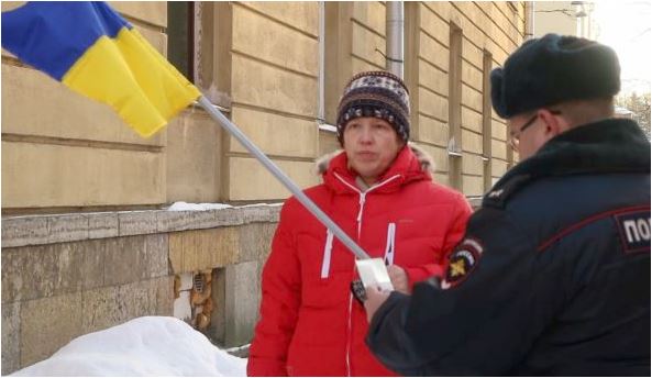 Сообщается, что пока активисты общались с сотрудниками украинского консульства, против их акции выступали представители "Народно-освободительного движения", которые также пришли к зданию консульства с плакатами и флагами несуществующей "Новороссии".